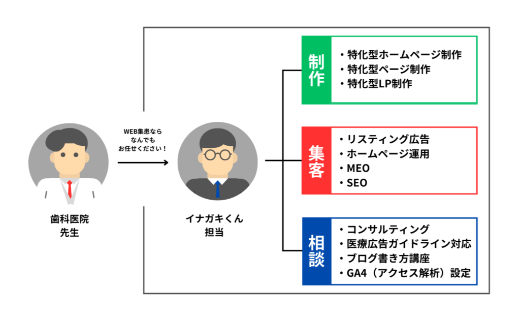 イナガキくんは「制作」「集客」「相談」で